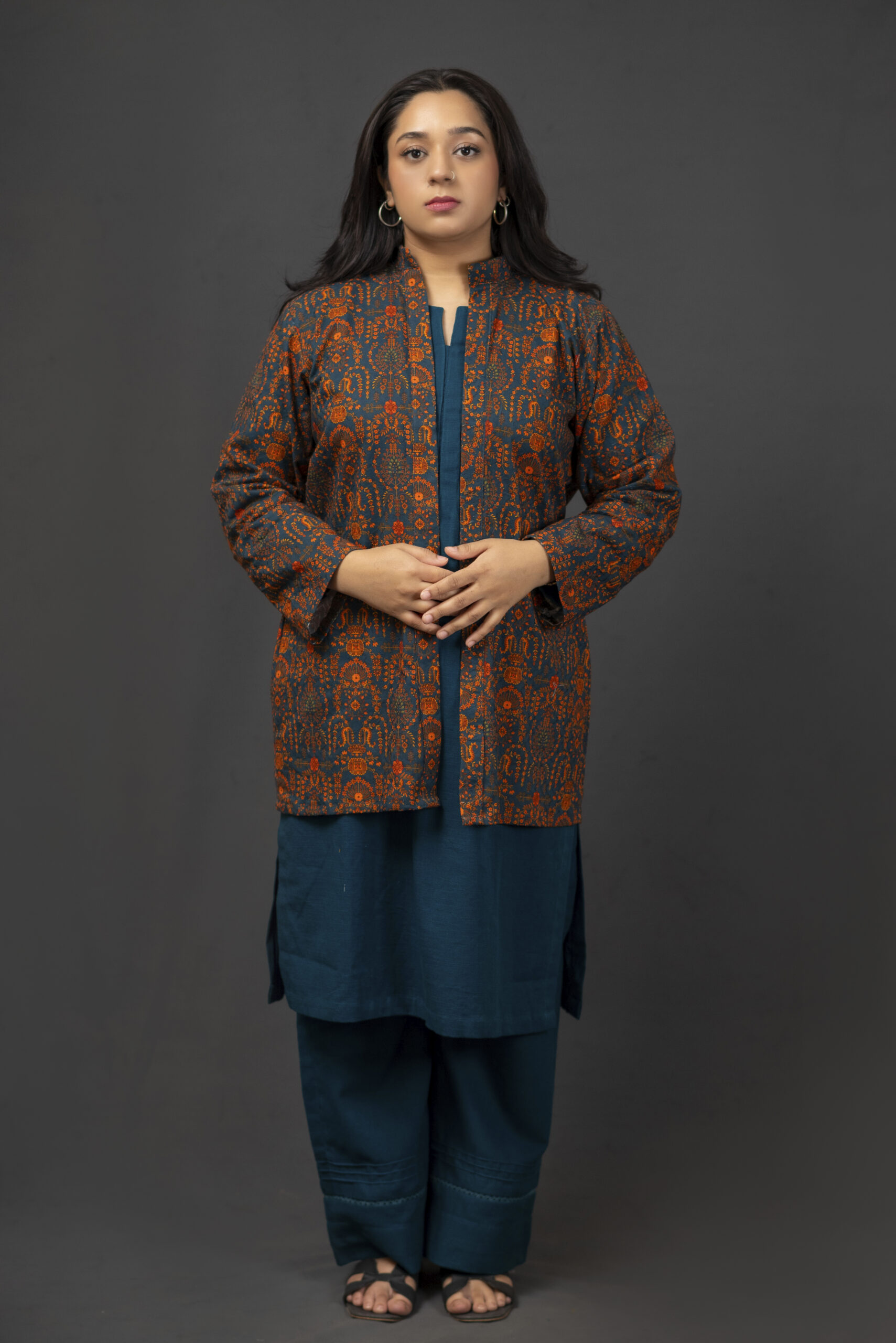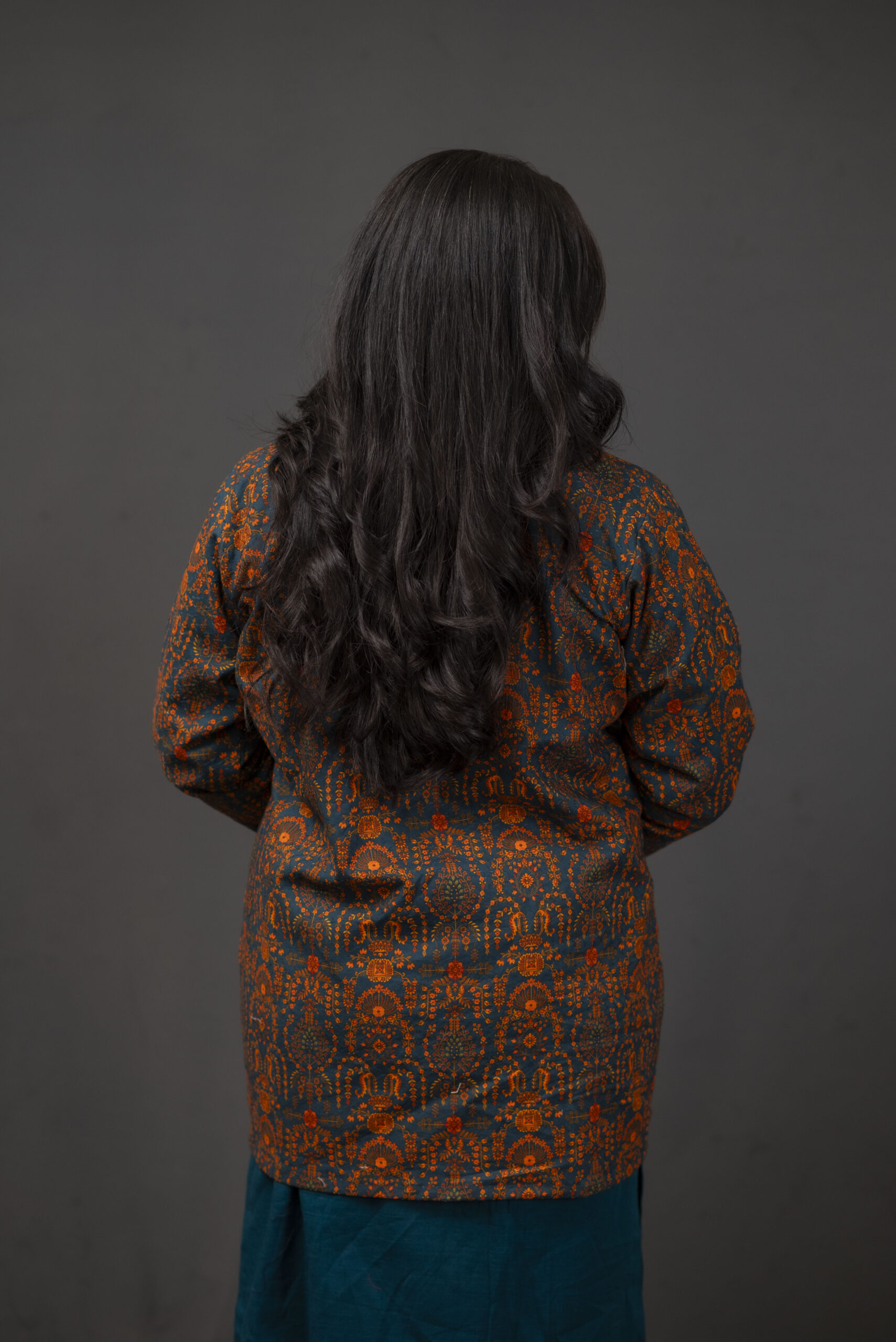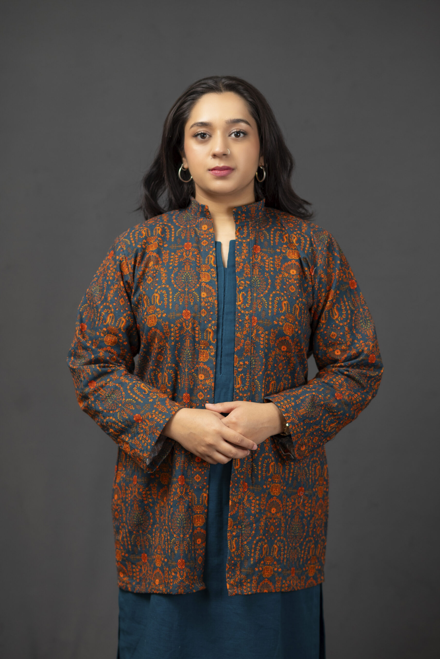 Part of our TradXTrend collection, this jacket is highly popular. This half-length jacket can be paired with any solid-colored outfit or even western attire. Wearing it gives you a perfectly stylish and complete look.